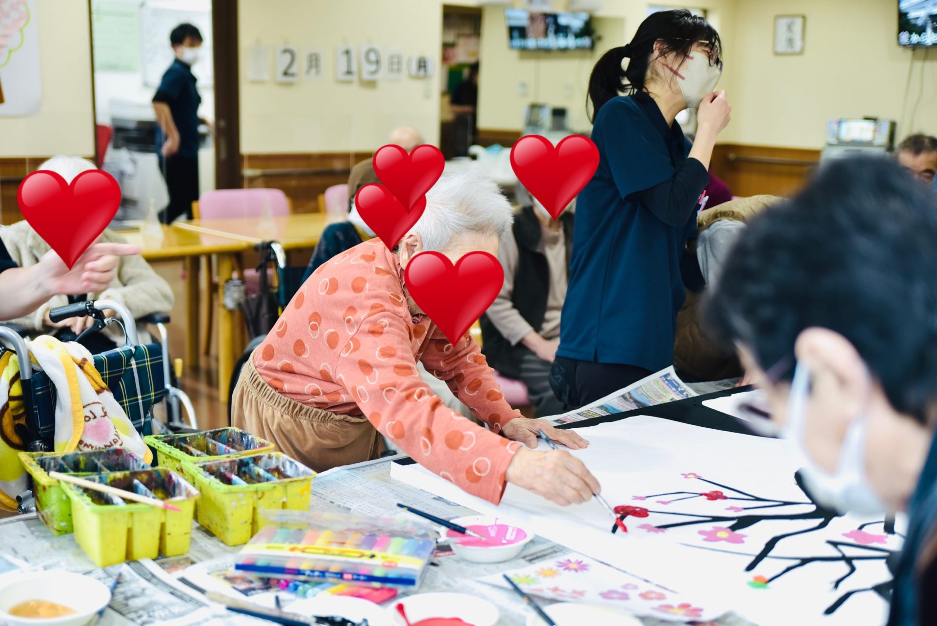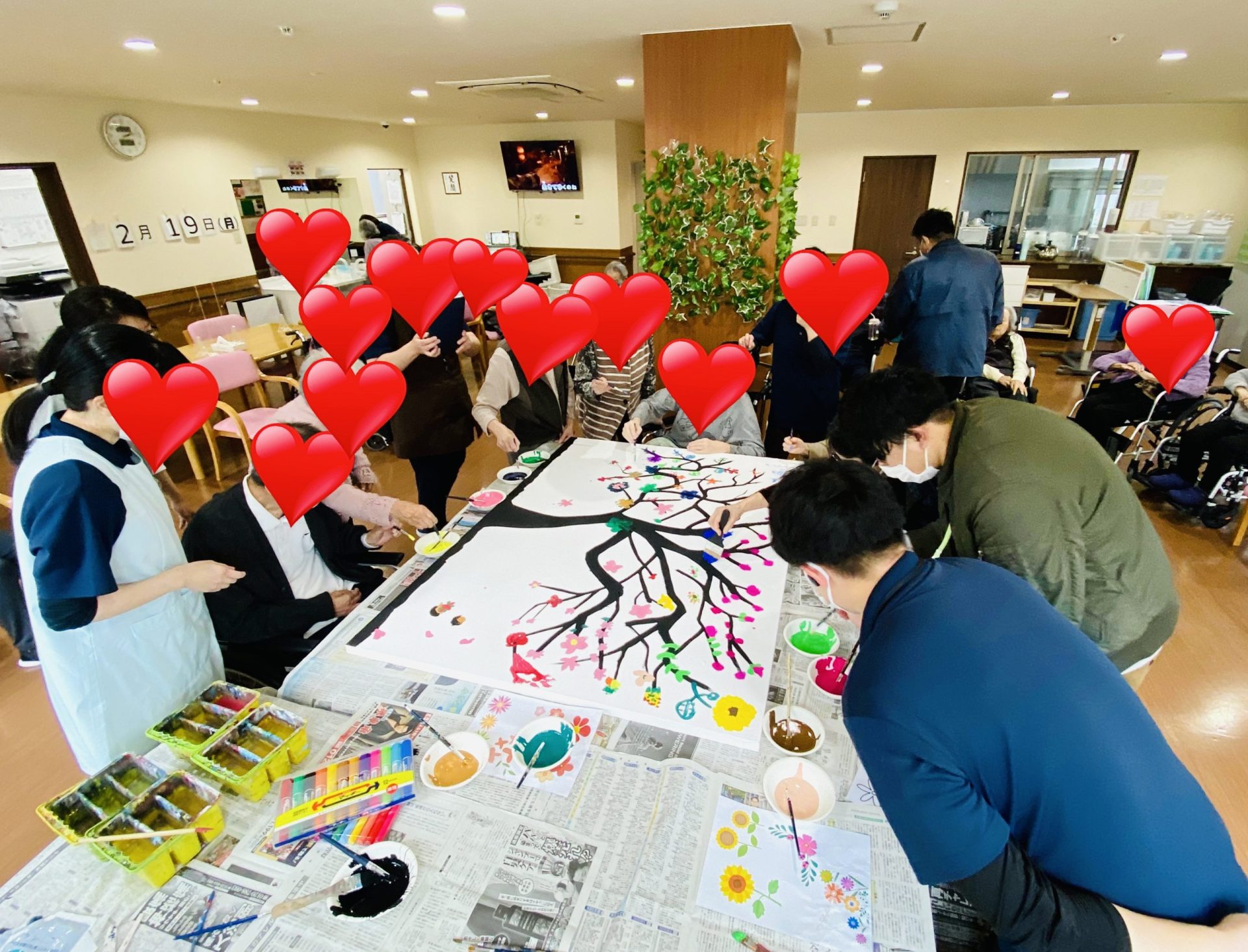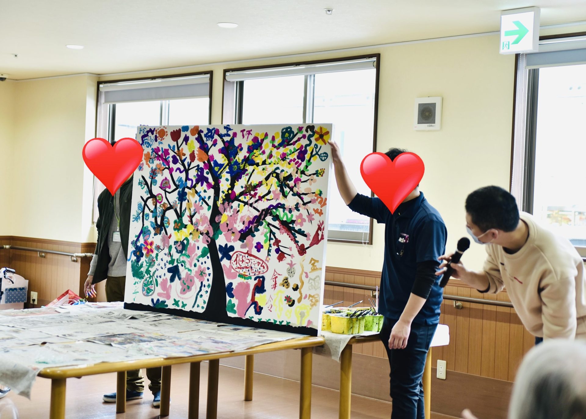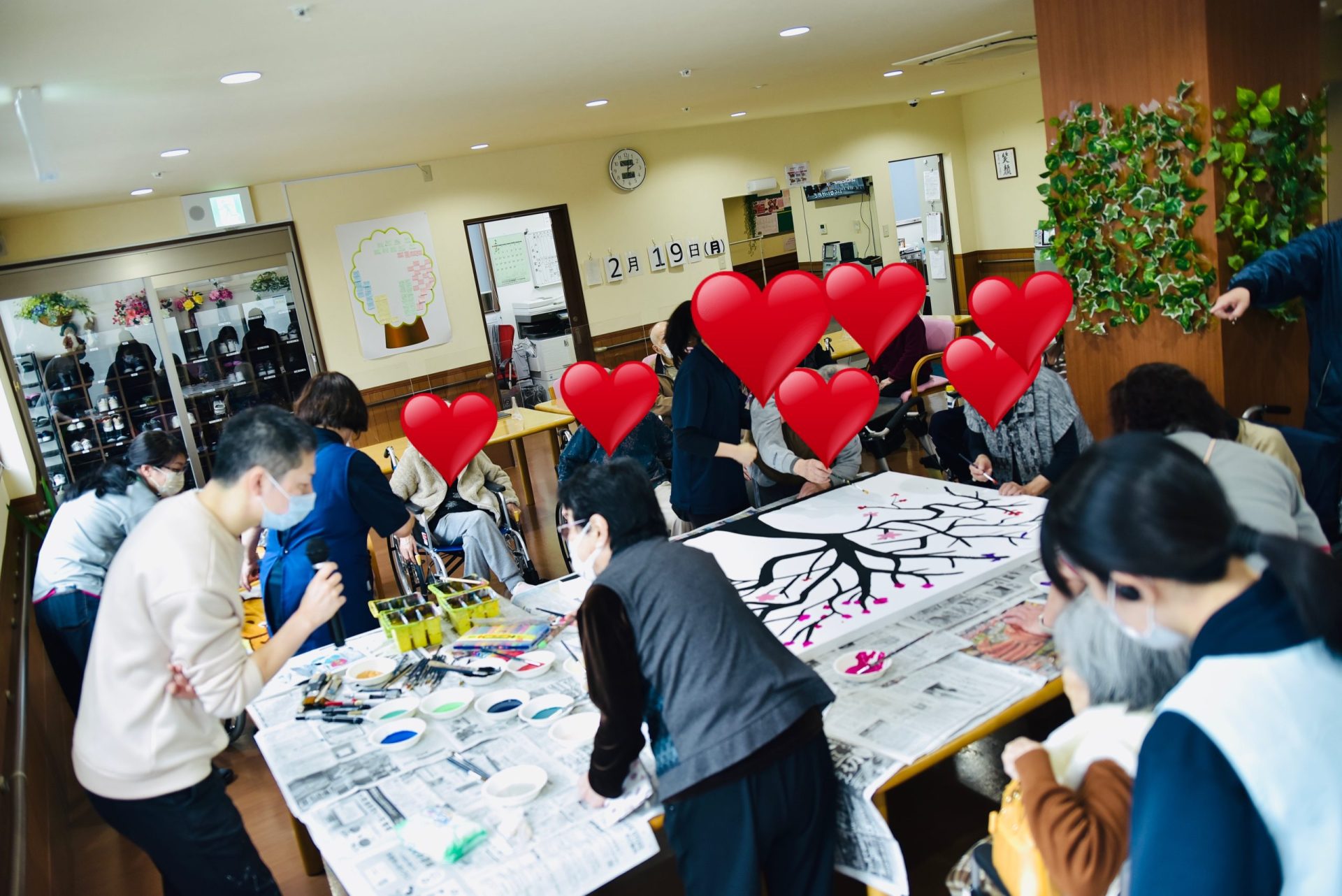 また、老人ホームなどの施設やお子様の団体や集まりに出張し、1枚の大きなキャンバスにみんなで絵を書いたりするようなワークショップも大人気です。