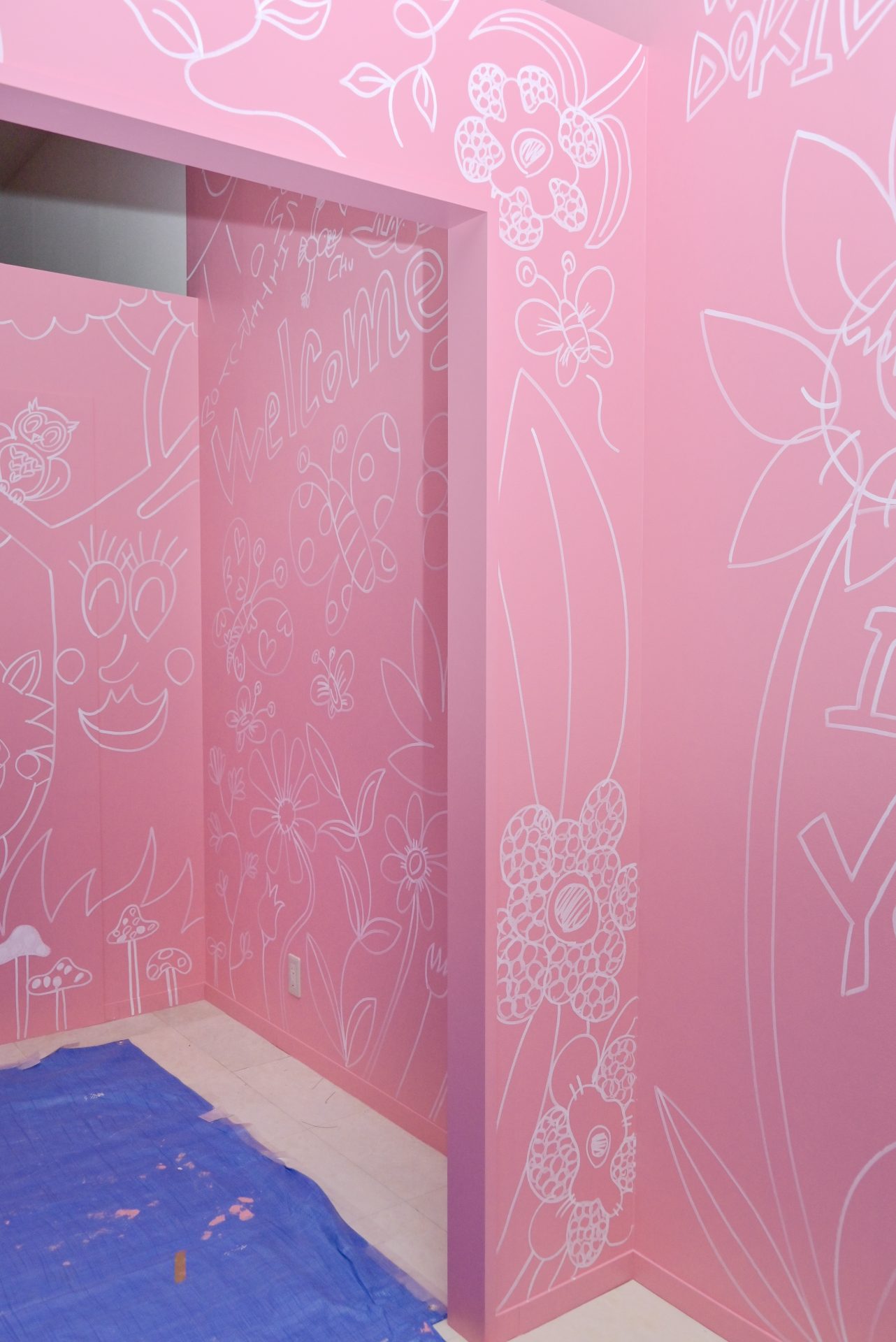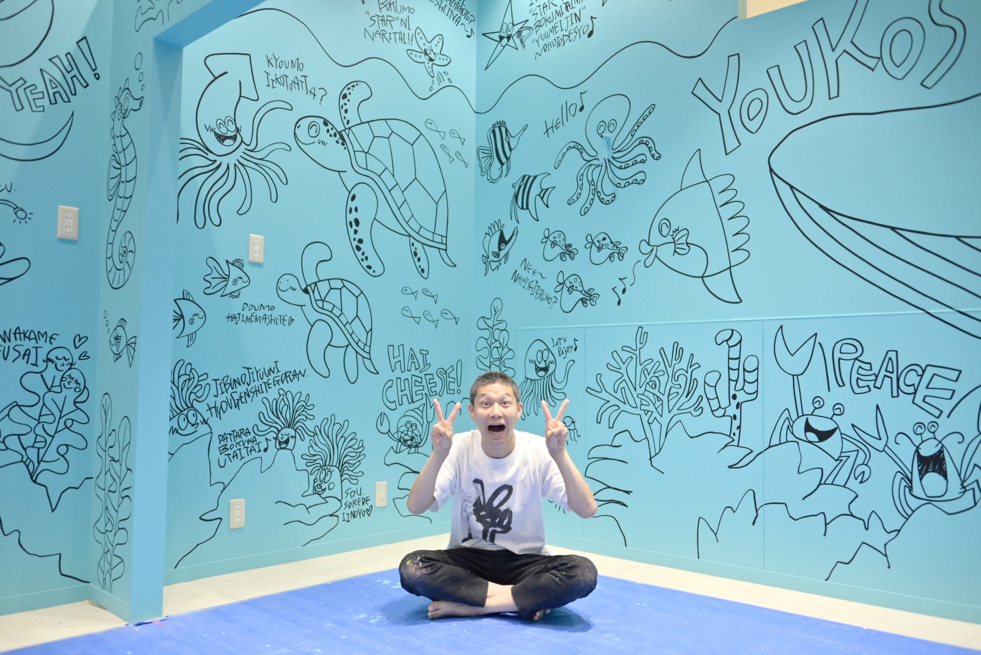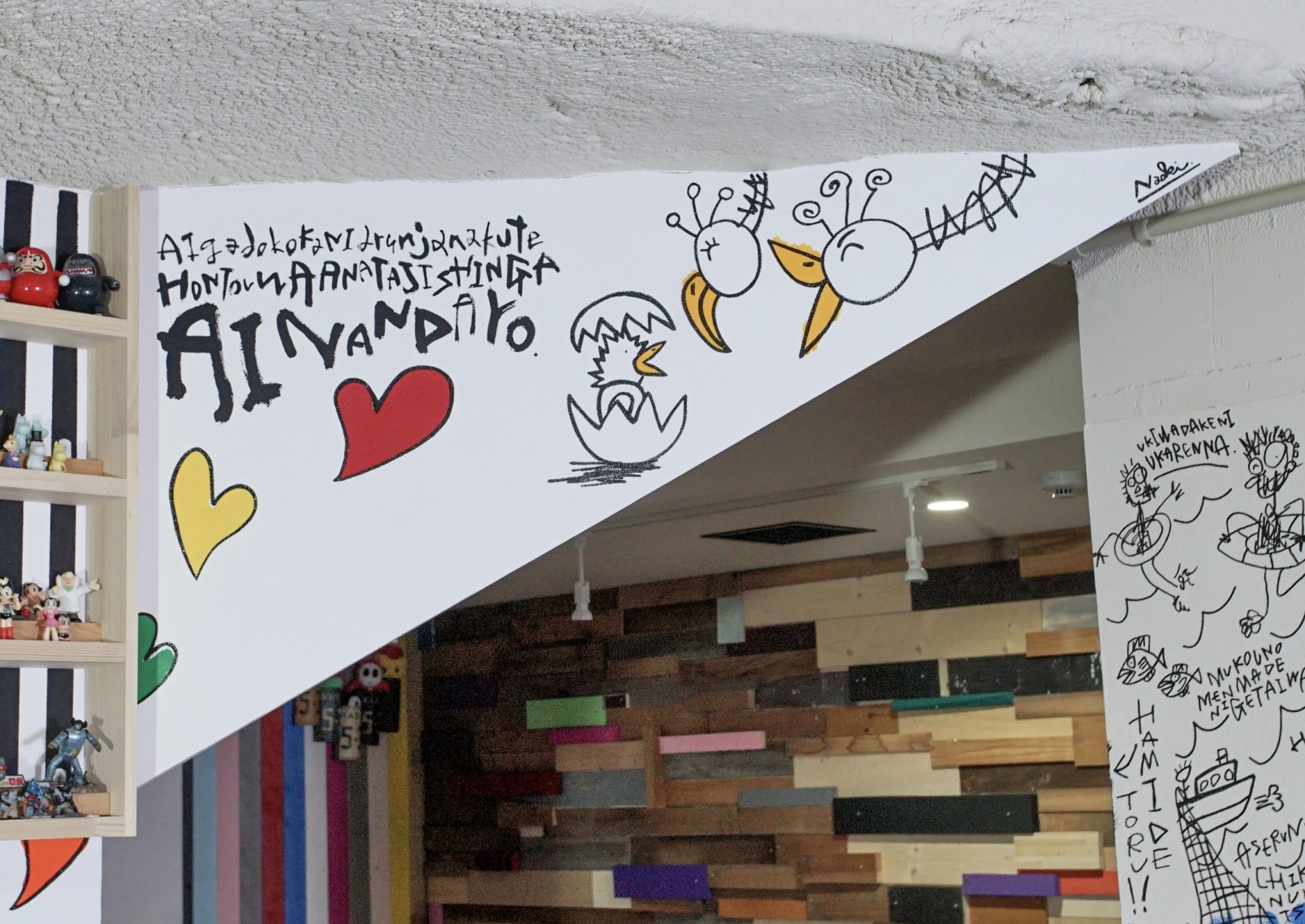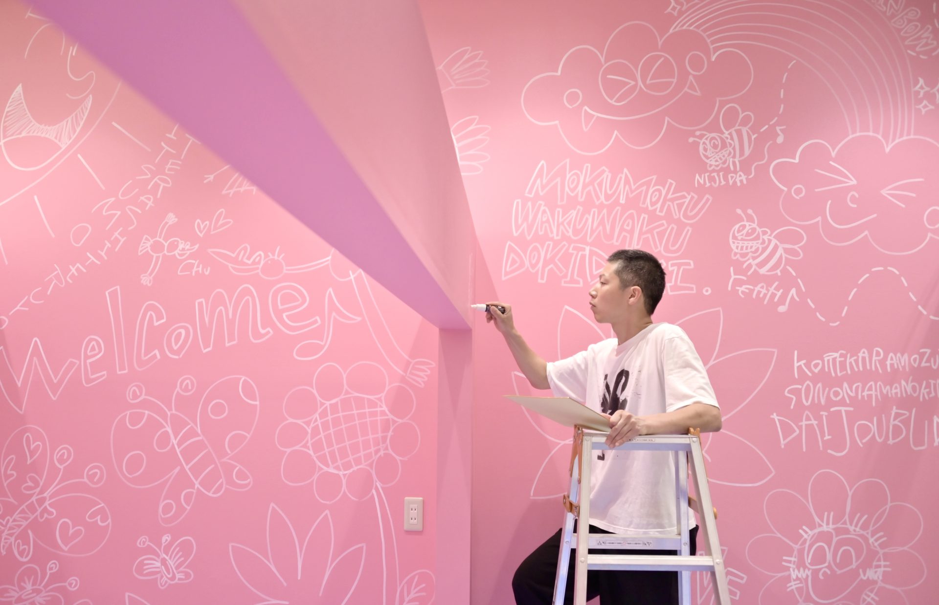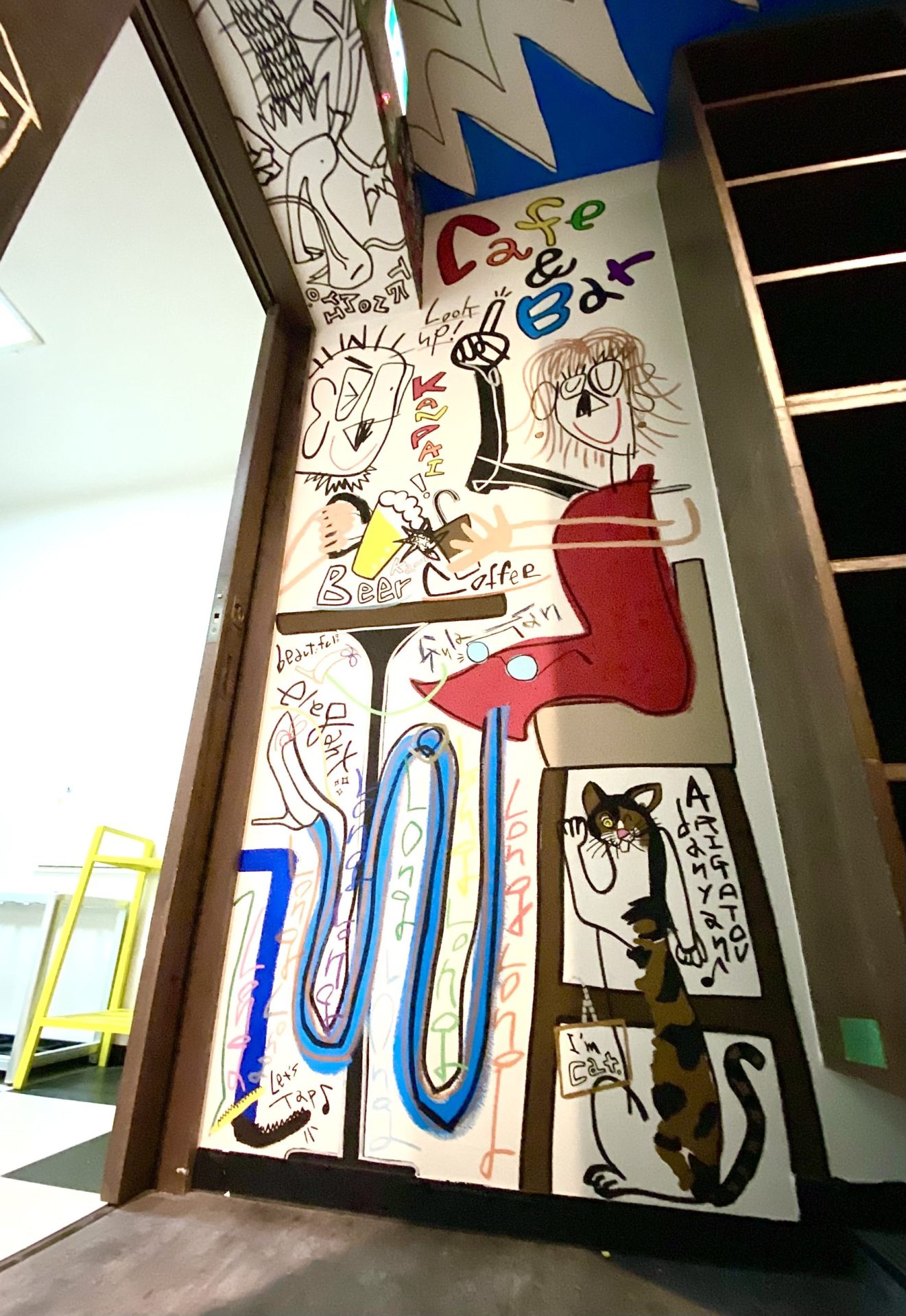 「現代アーティスト 稲垣尚毅」があなたのお店や会社やご自宅の壁に絵の具やマーカーを使用し、壁に直接絵を描きます。