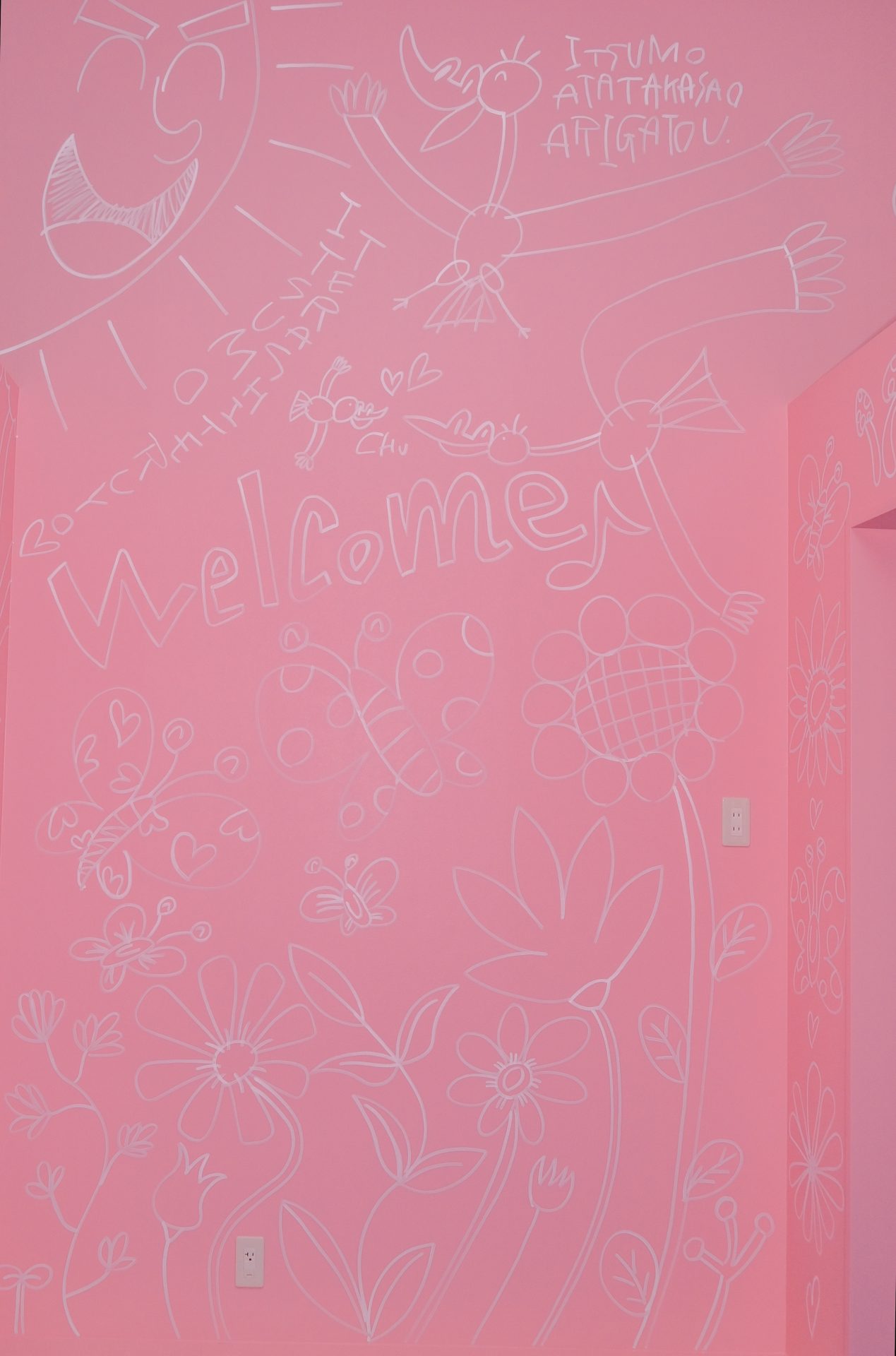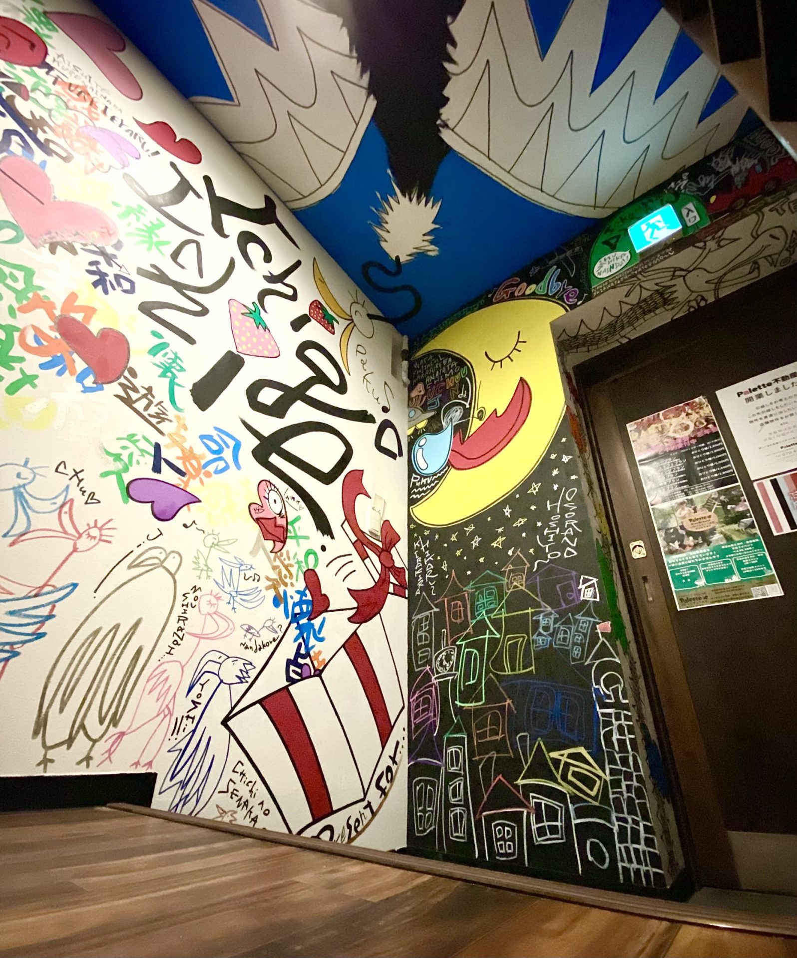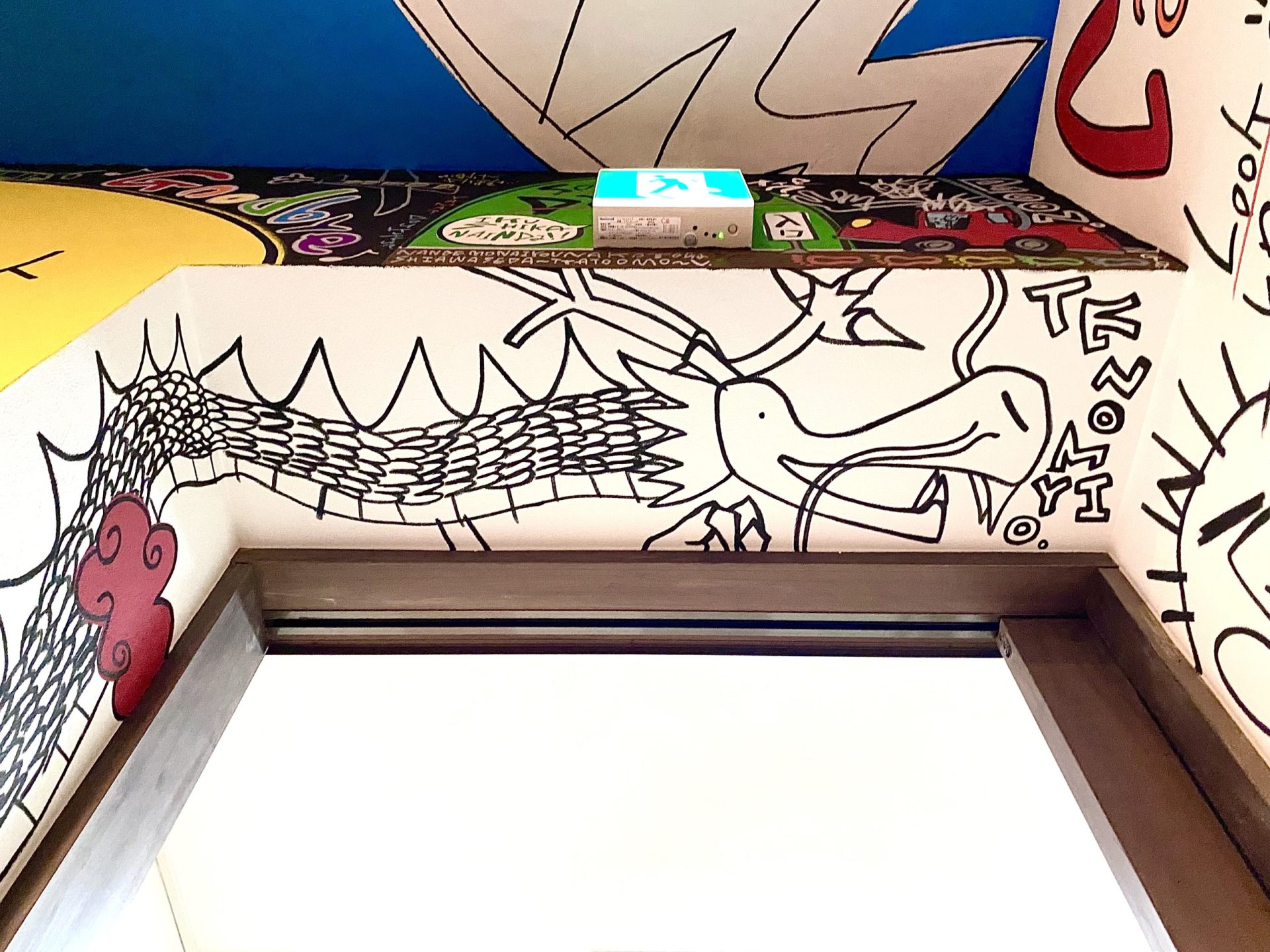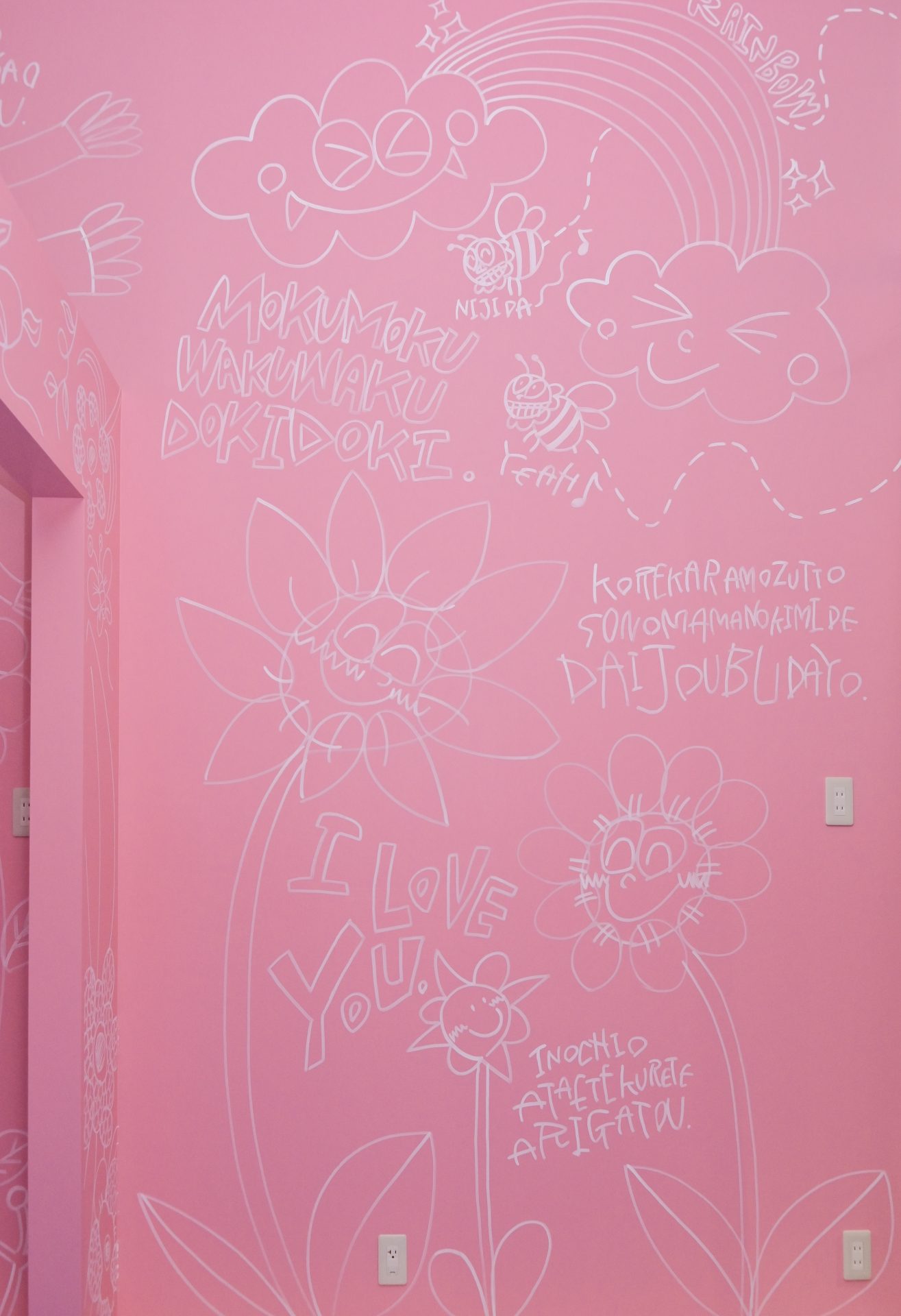 「現代アーティスト 稲垣尚毅」があなたのお店や会社やご自宅の壁に絵の具やマーカーを使用し、壁に直接絵を描きます。
