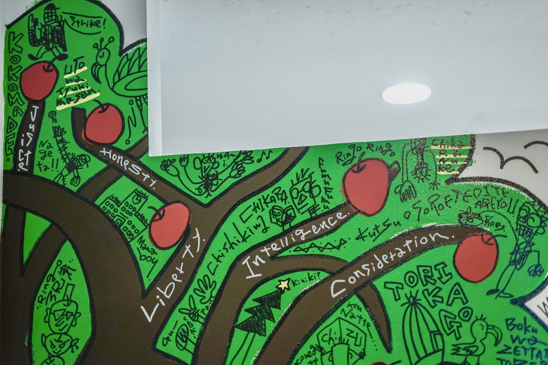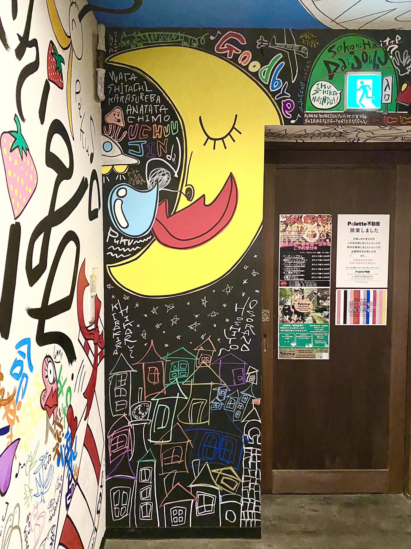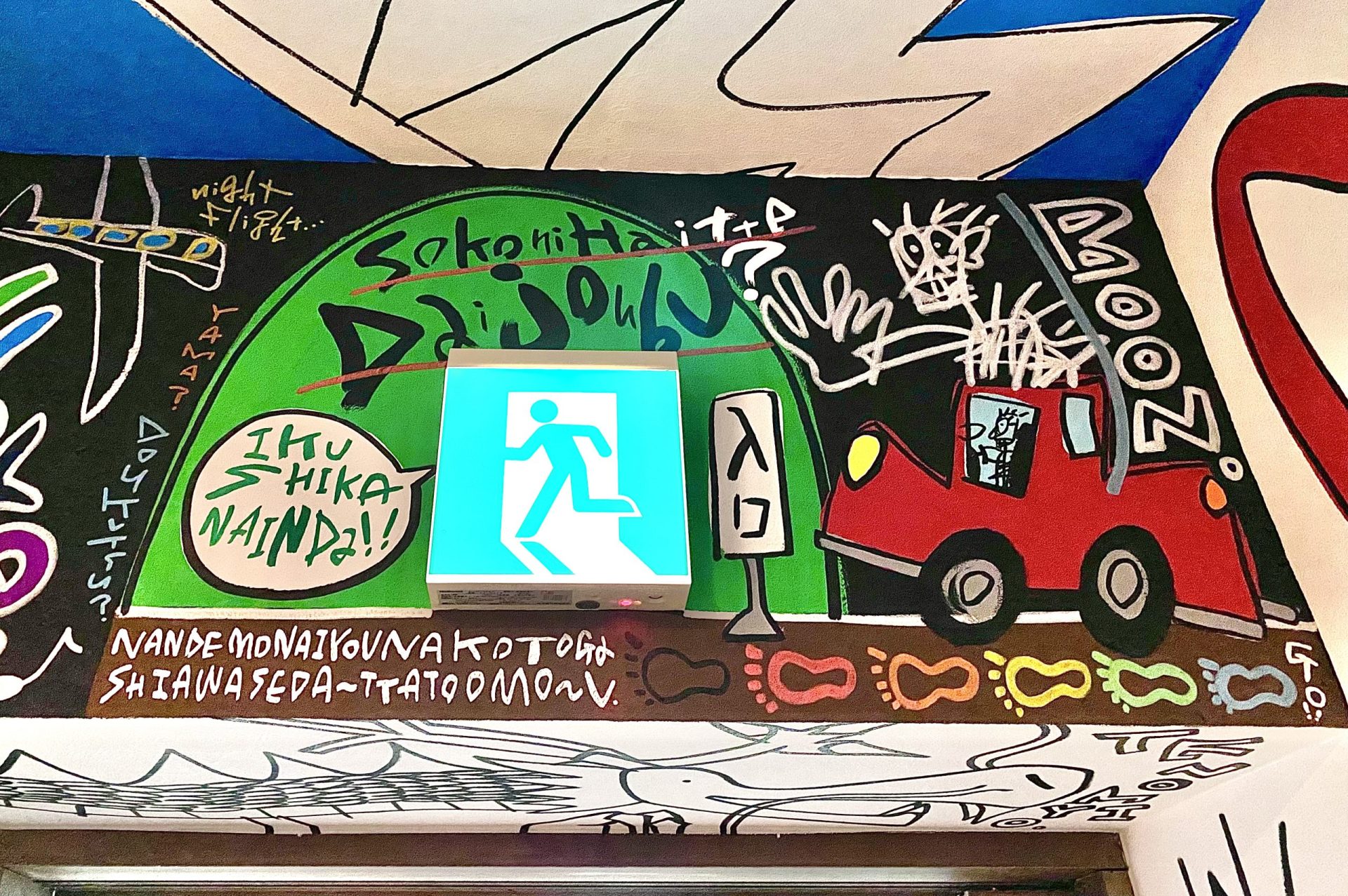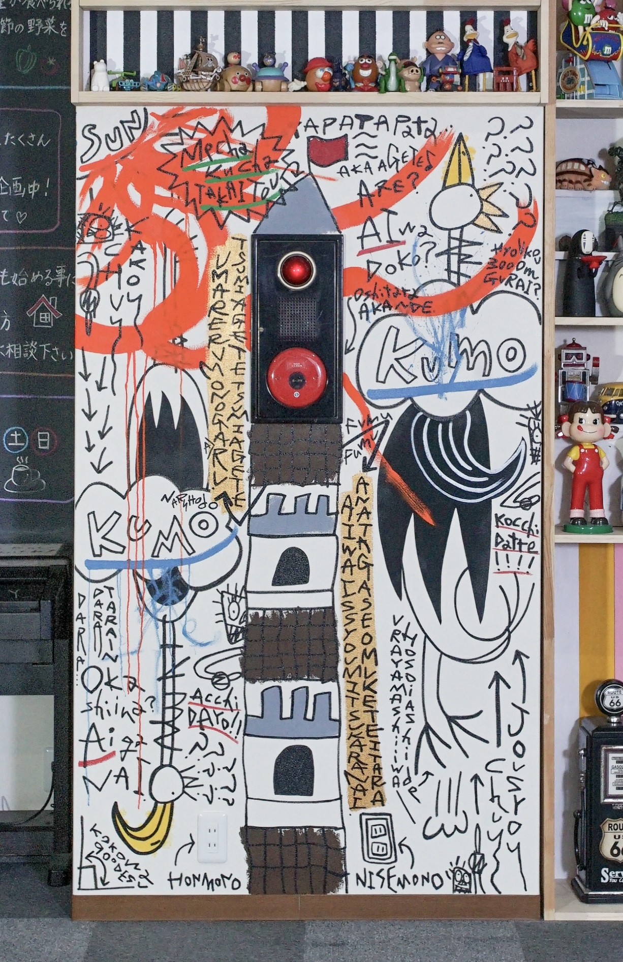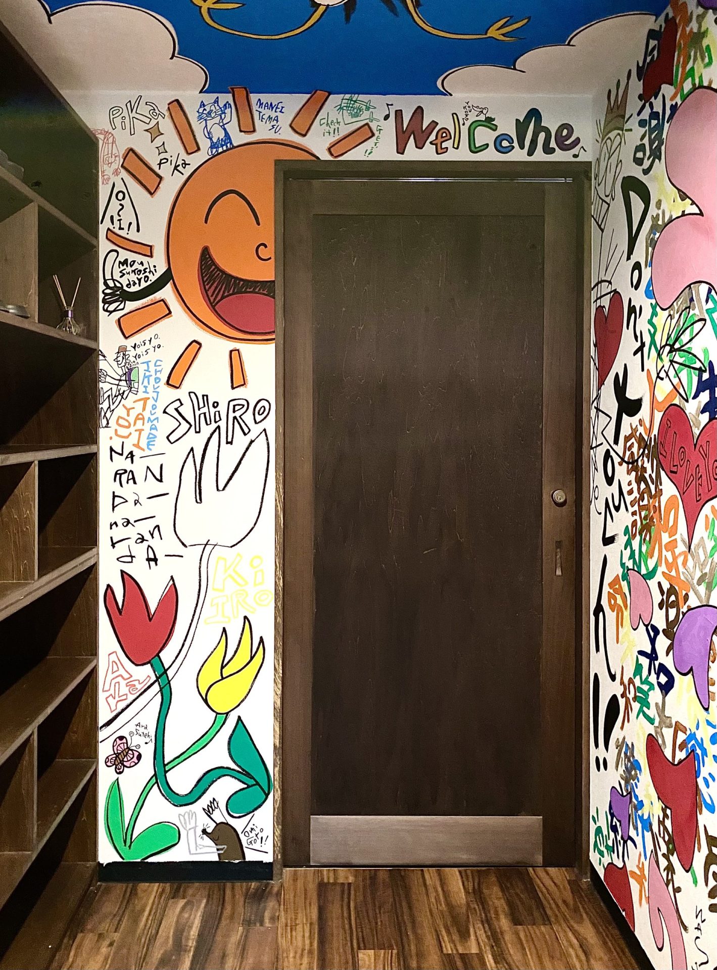 「現代アーティスト 稲垣尚毅」があなたのお店や会社やご自宅の壁に絵の具やマーカーを使用し、壁に直接絵を描きます。