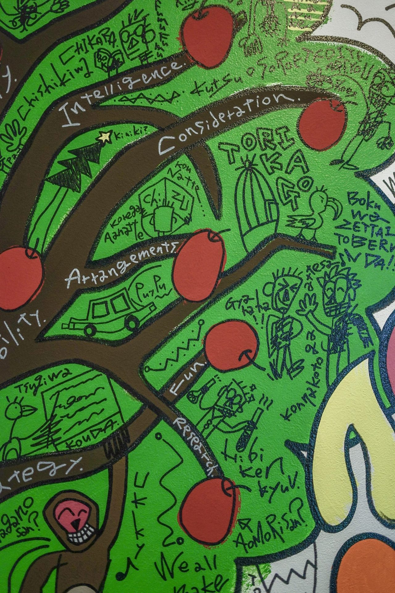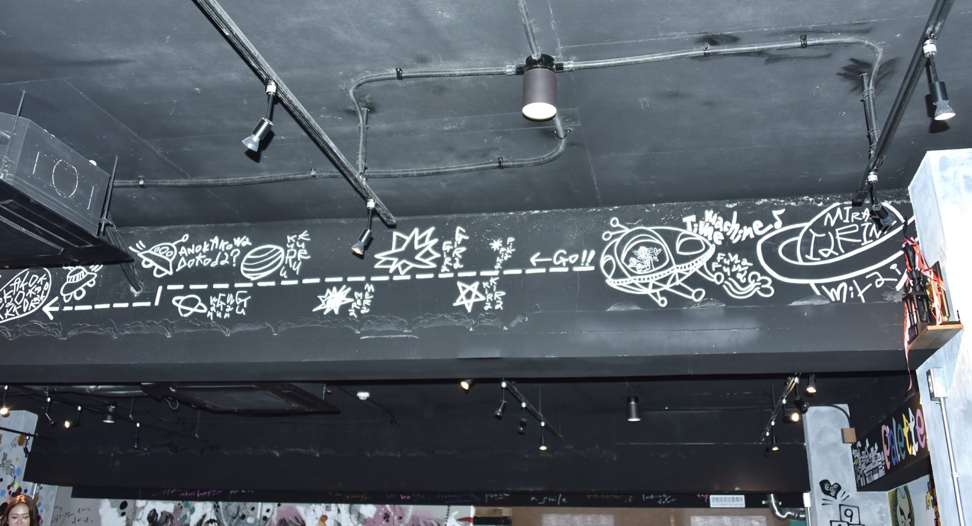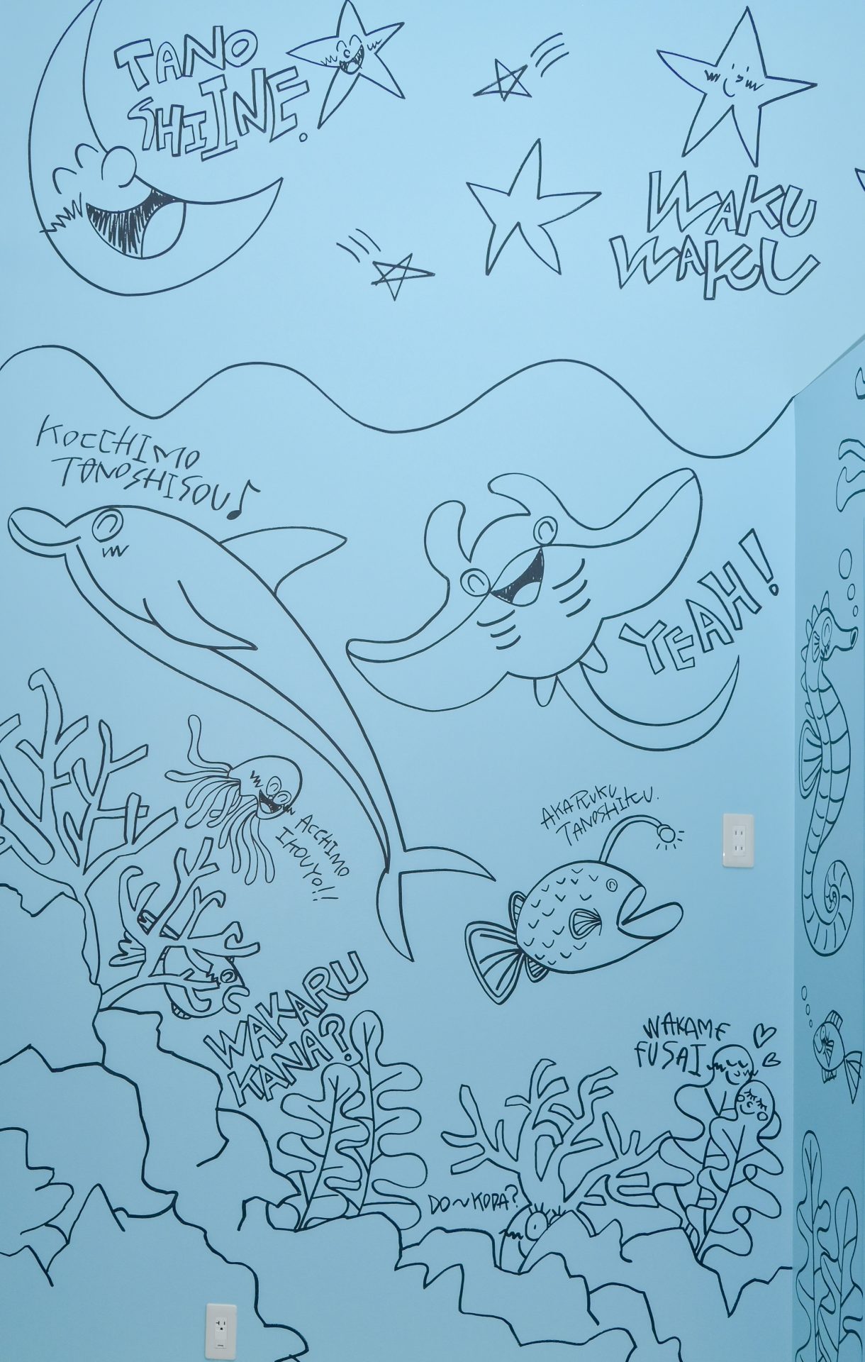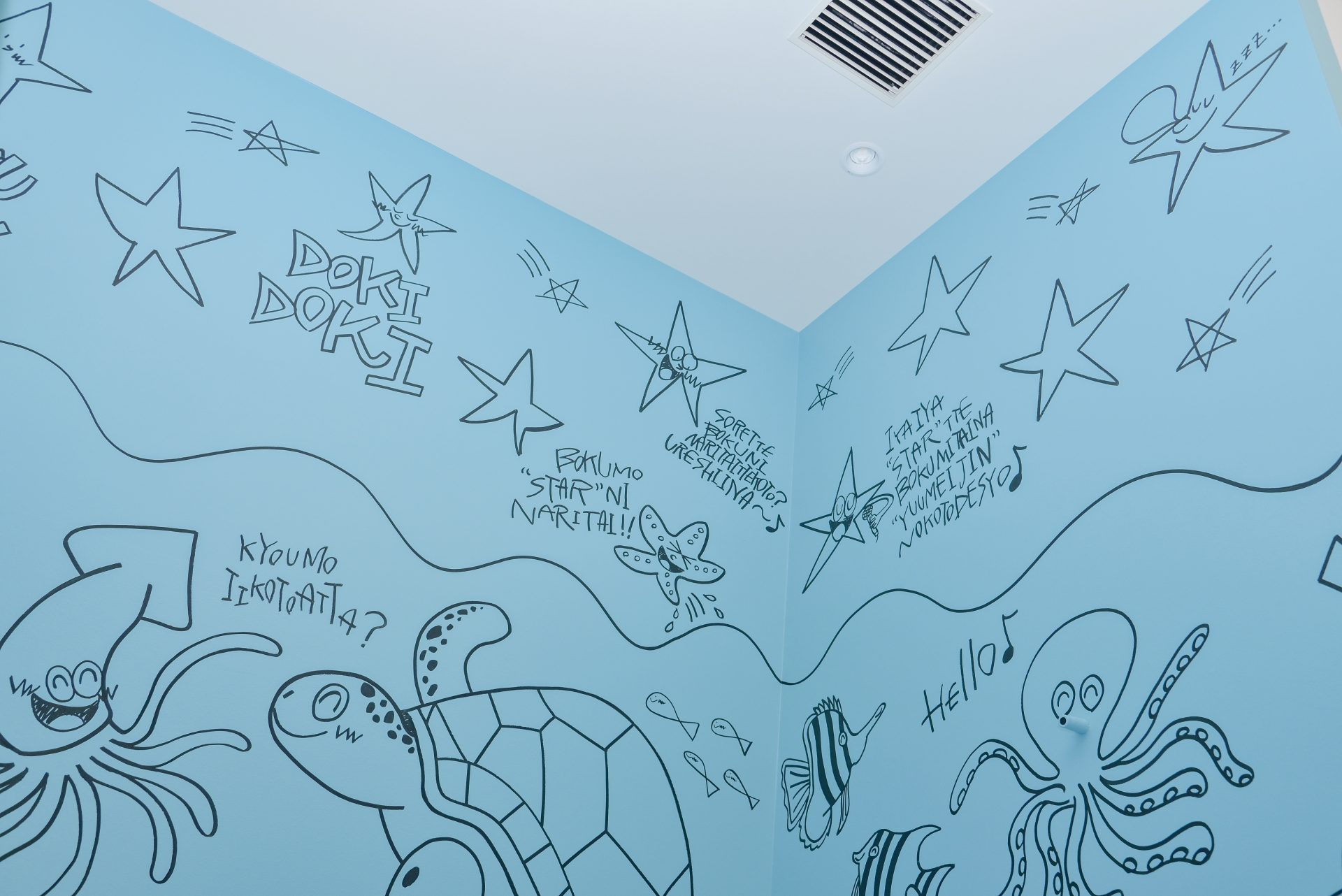 「現代アーティスト 稲垣尚毅」があなたのお店や会社やご自宅の壁に絵の具やマーカーを使用し、壁に直接絵を描きます。