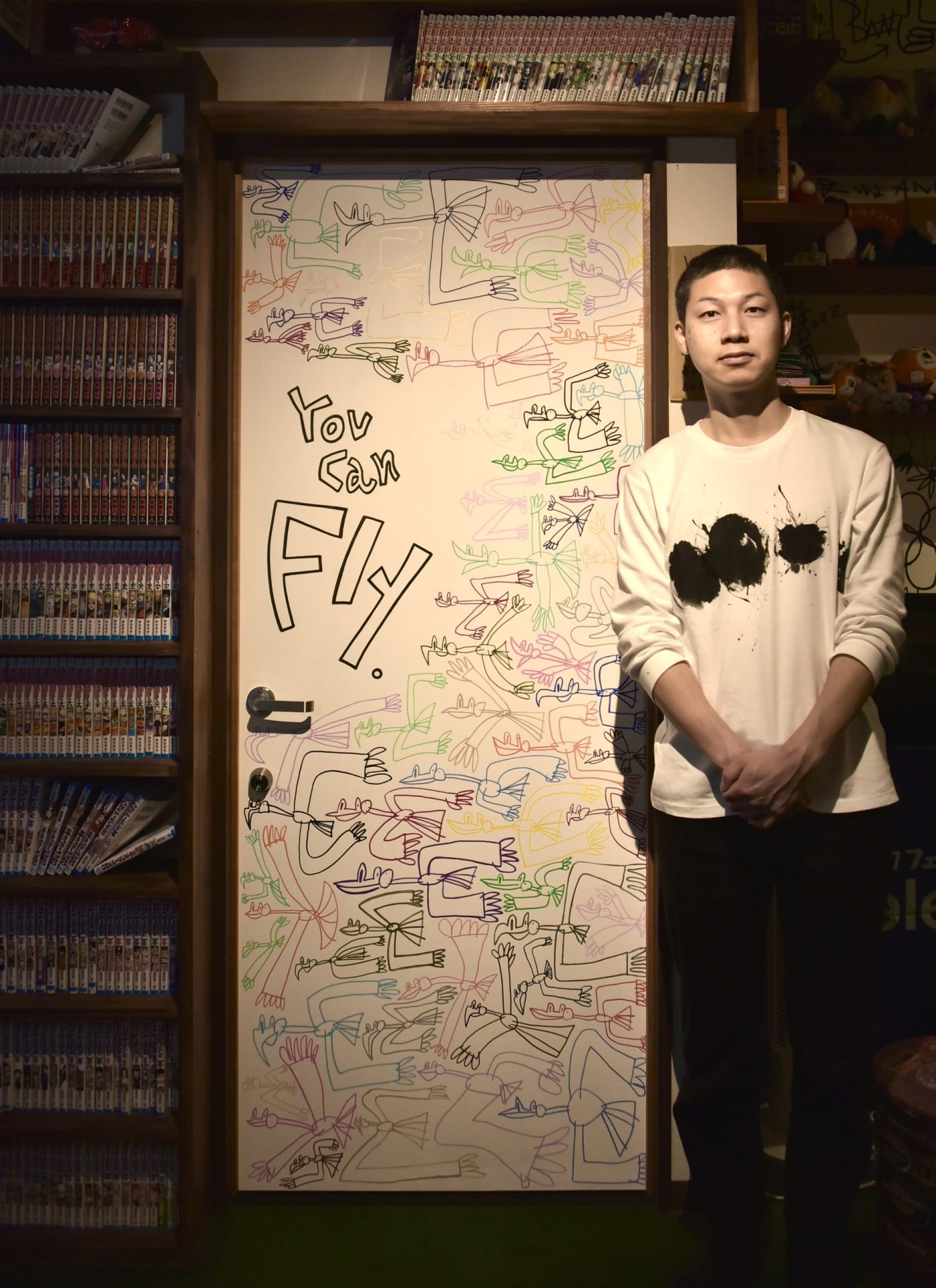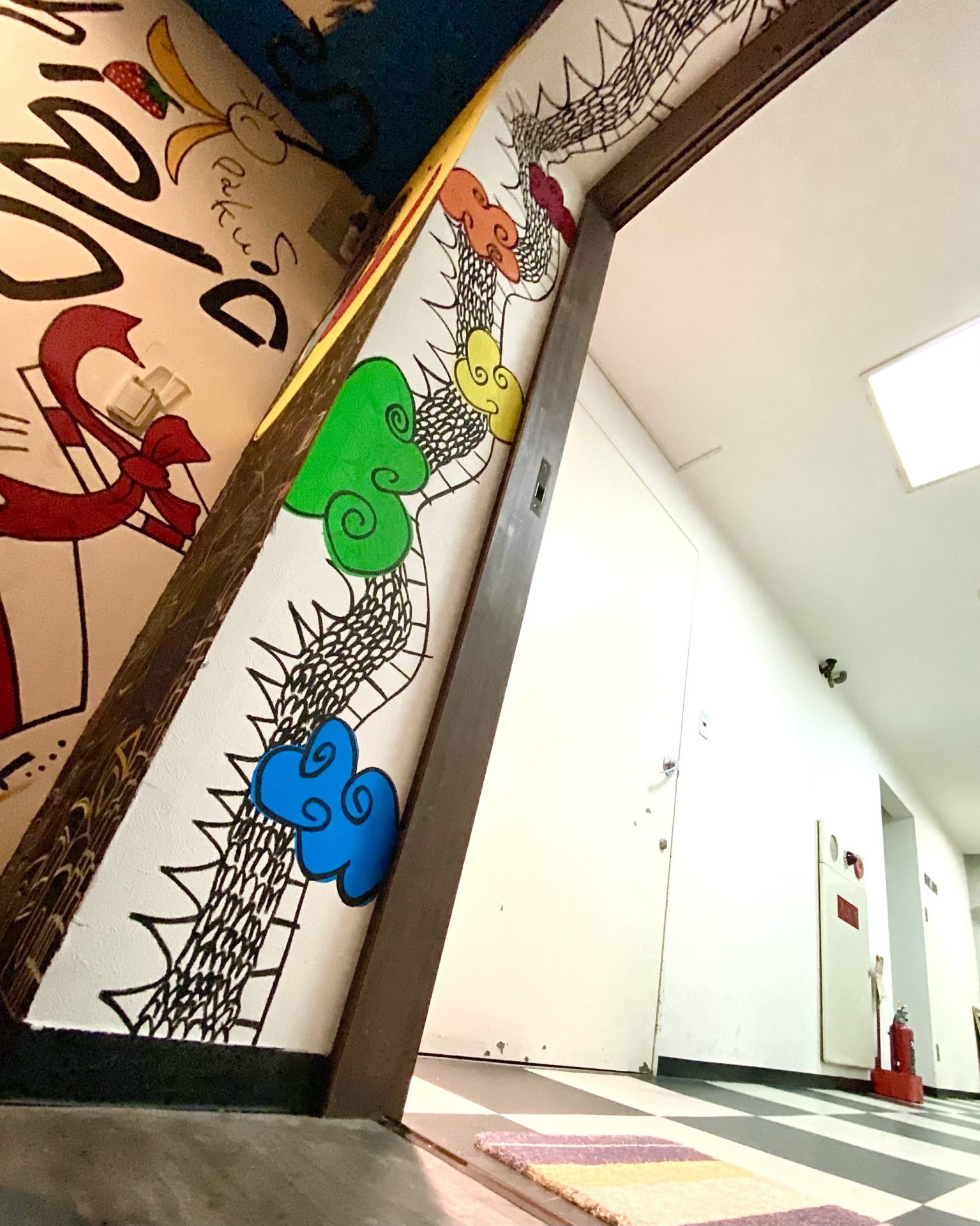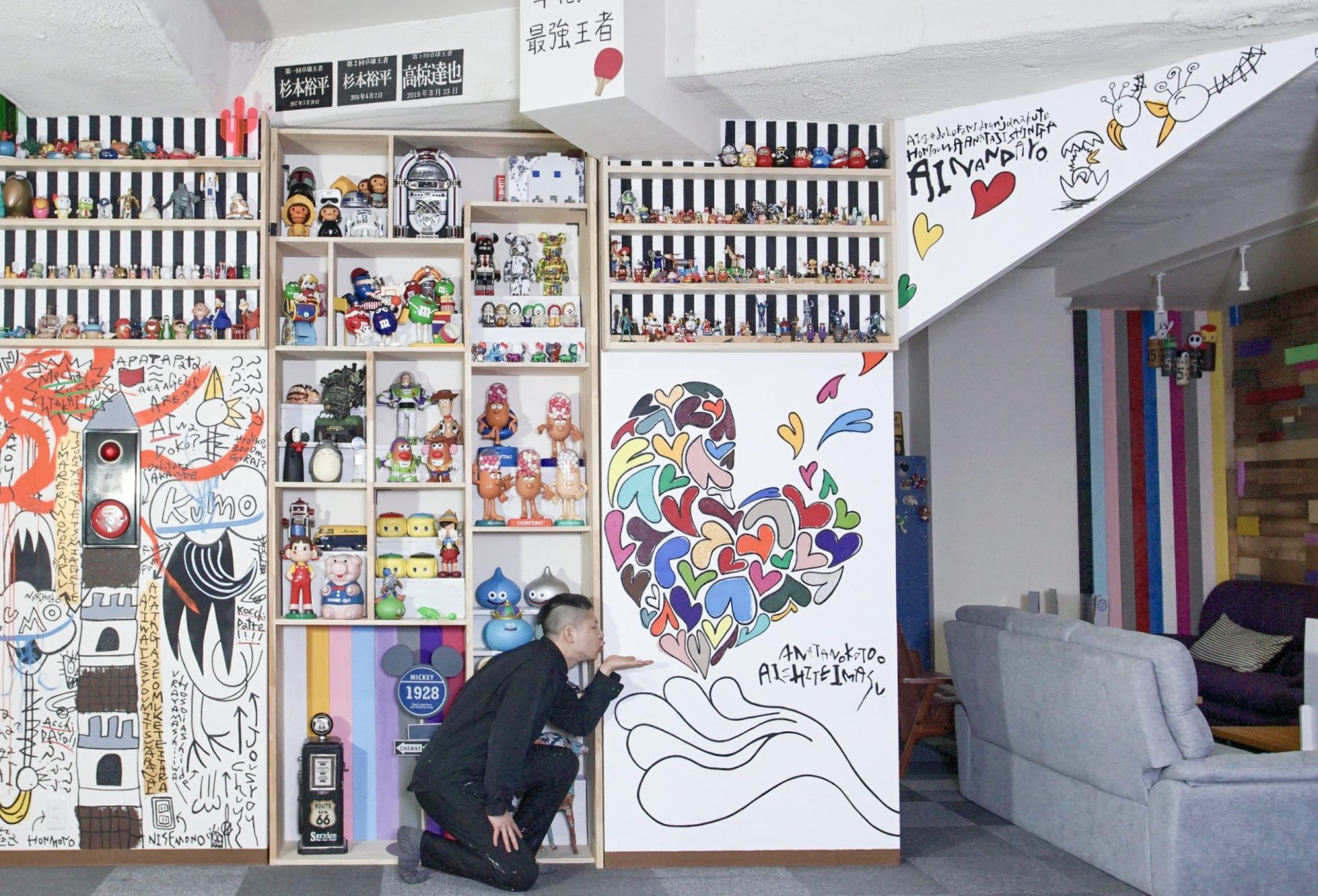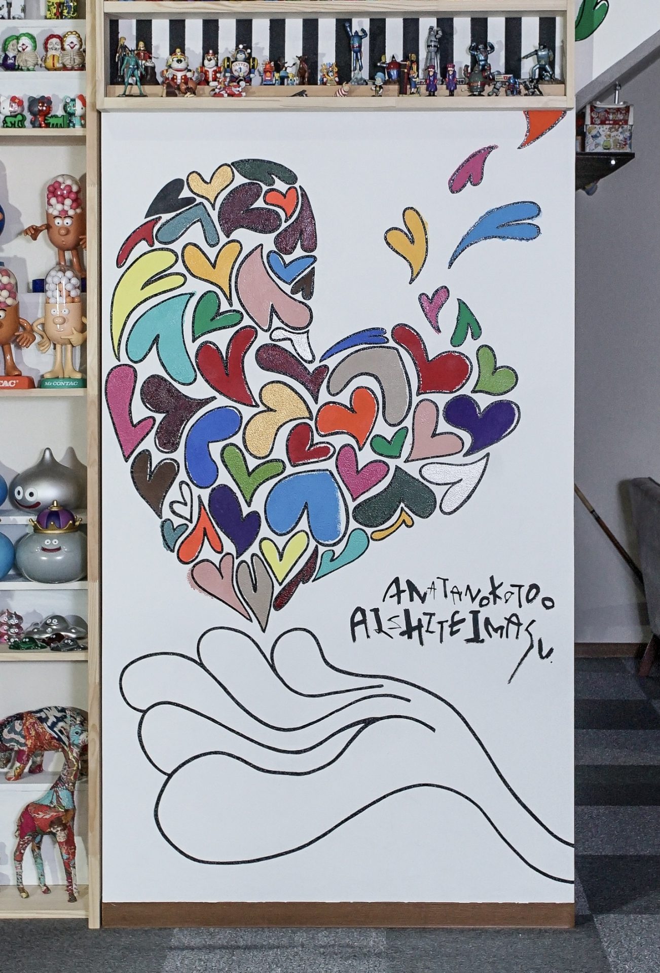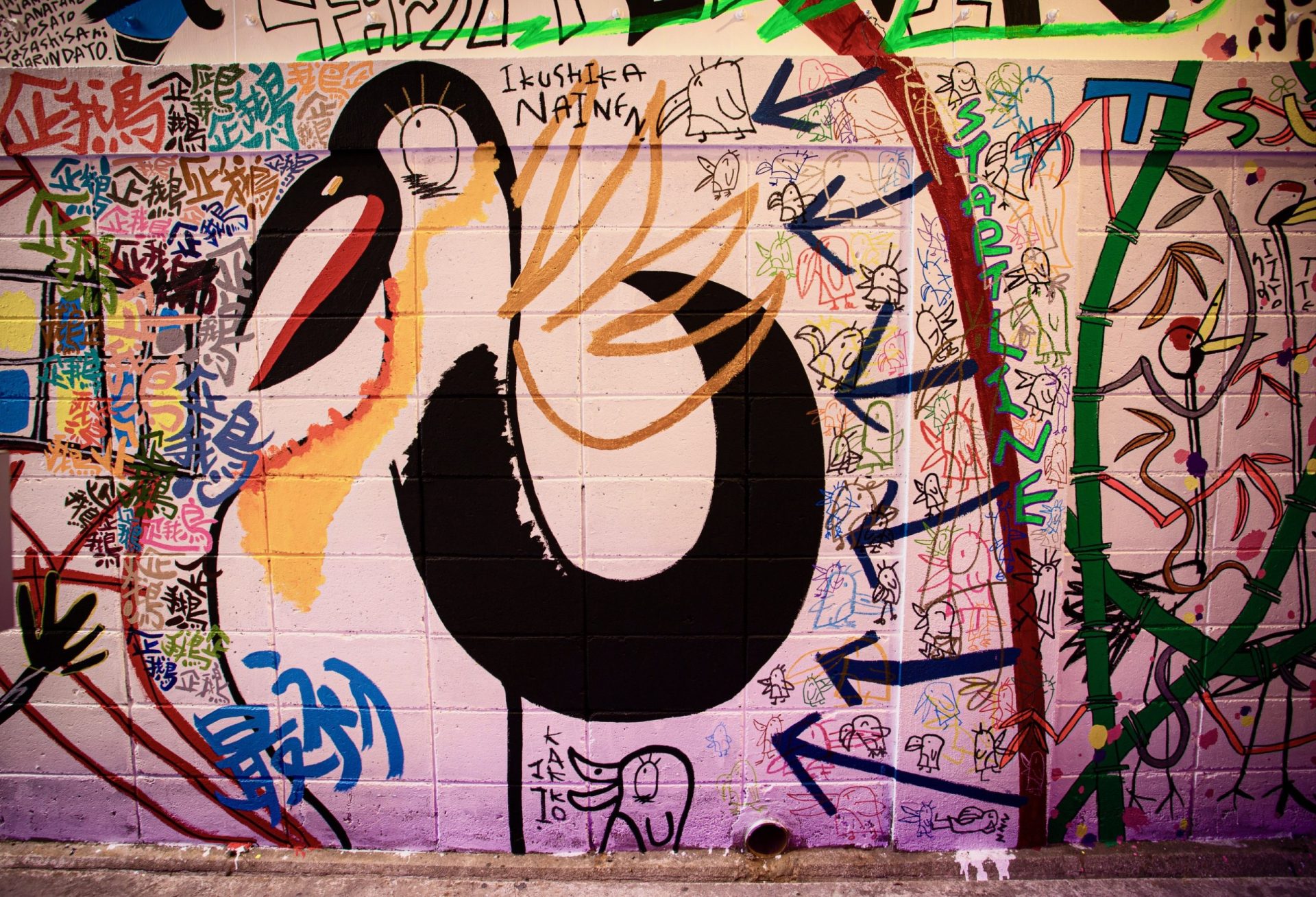 「現代アーティスト 稲垣尚毅」があなたのお店や会社やご自宅の壁に絵の具やマーカーを使用し、壁に直接絵を描きます。